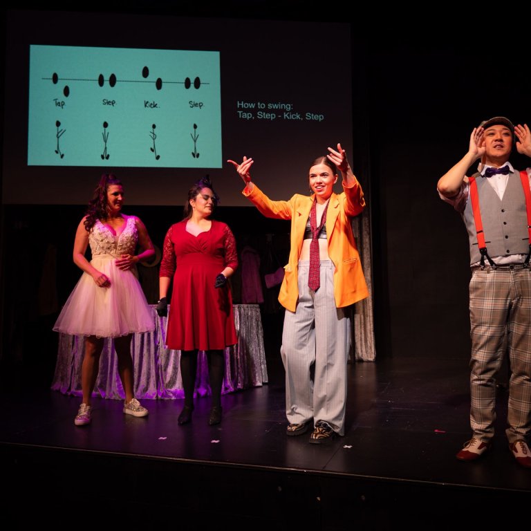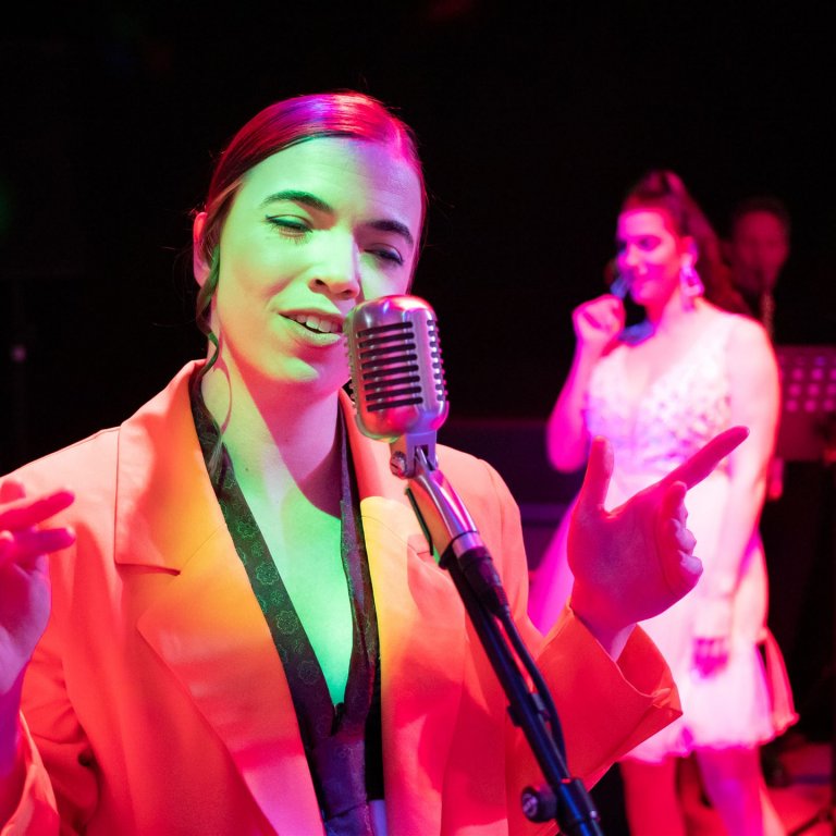 Das Publikum sitzt in dieser Inszenierung ganz dicht am Geschehen. Und wer mag, kann in der Pause im Club “Momus” sein Tanzbein schwingen.