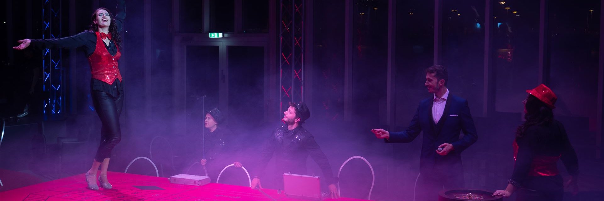 Der Saal des Opernlofts wird hier zum großen Casino. An den Spieltischen kann das eigene Glück herausgefordert werden.