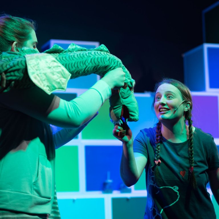 Das alles erzählen wir in einer eigenen neunzigminütigen Fassung als Oper in kurz. Wir verlegen die Handlung ins Heute, an einen Ort fernab von Drachen und Nibelungen: mitten in eine Pyjama-Party. Drei junge Frauen übernehmen sämtliche Rollen. Sie spielen nicht nur die Rheintöchter, Brünnhilde und die Walküren, sondern auch gleich noch Siegfried und dessen Gegenspieler Hagen.