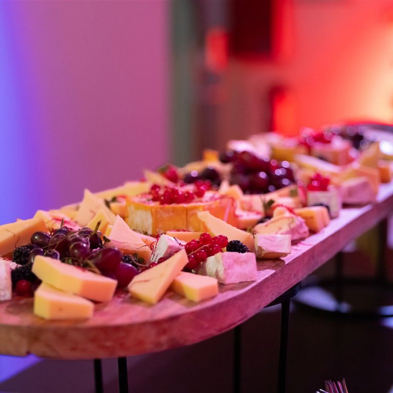 Falls Sie in Reihenbestuhlung sitzen, steht im Foyer oder im Bistro ein eingedeckter Tisch für Ihre Teilnahme am Büfett bereit.