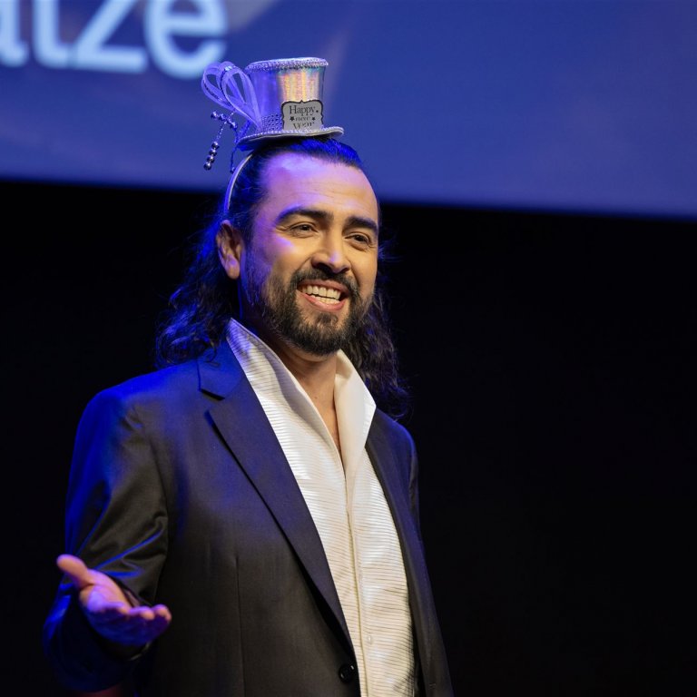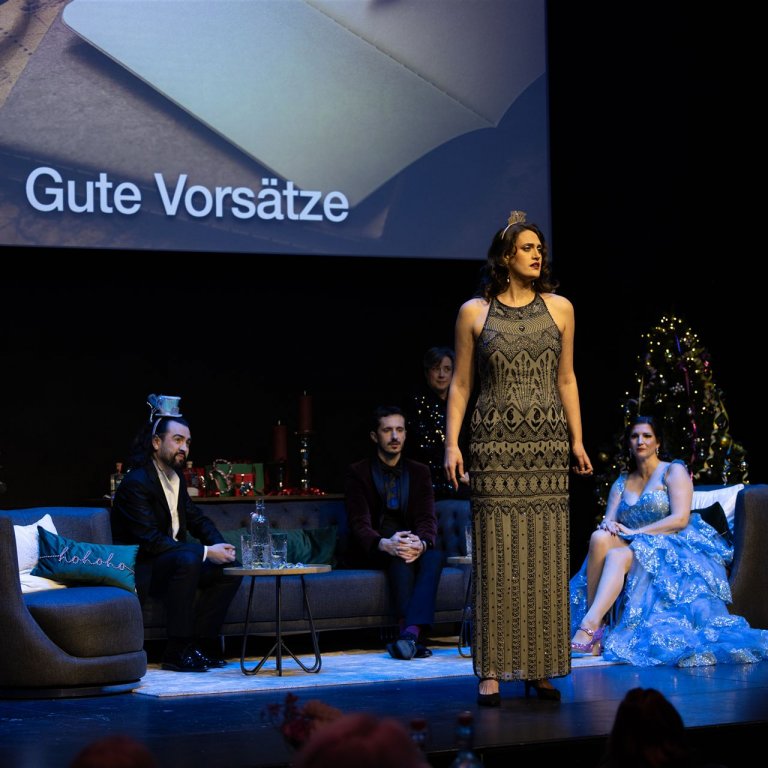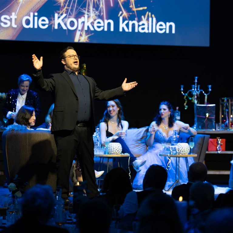 90 Sekunden haben die Sänger*innen Zeit, ihre Arie oder ihr Lied zu präsentieren. 90 Sekunden, die über Sieg oder Niederlage entscheiden. Denn die Siegerin oder den Sieger wählen Sie! Ein Dezibelmesser misst die Stärke Ihres Applauses. Der Spaß geht über mehrere Runden. Jede Runde hat ein Thema, passend zum Jahreswechsel. Und pünktlich um Mitternacht stoßen wir alle miteinander an. Seien Sie dabei - es wird ein rauschendes Fest!