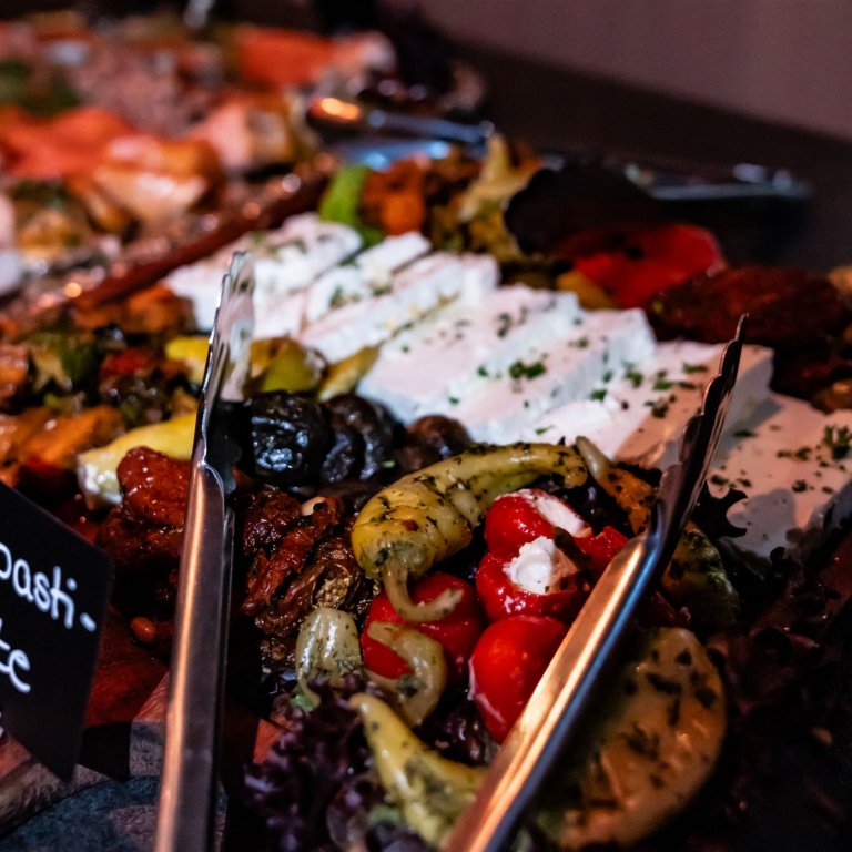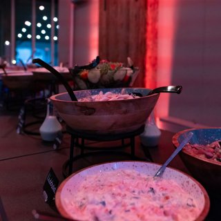 Falls Sie in Reihenbestuhlung sitzen, steht im Foyer oder im Bistro ein eingedeckter Tisch für Ihre Teilnahme am Büfett bereit.