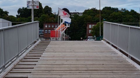 Steigen Sie an den Landungsbrücken aus der Bahn und gehen zum Anleger. Sie schippern dann entspannt mit der Fähre Linie 62 bis zum Anleger Dockland (7 Minuten Fahrzeit).