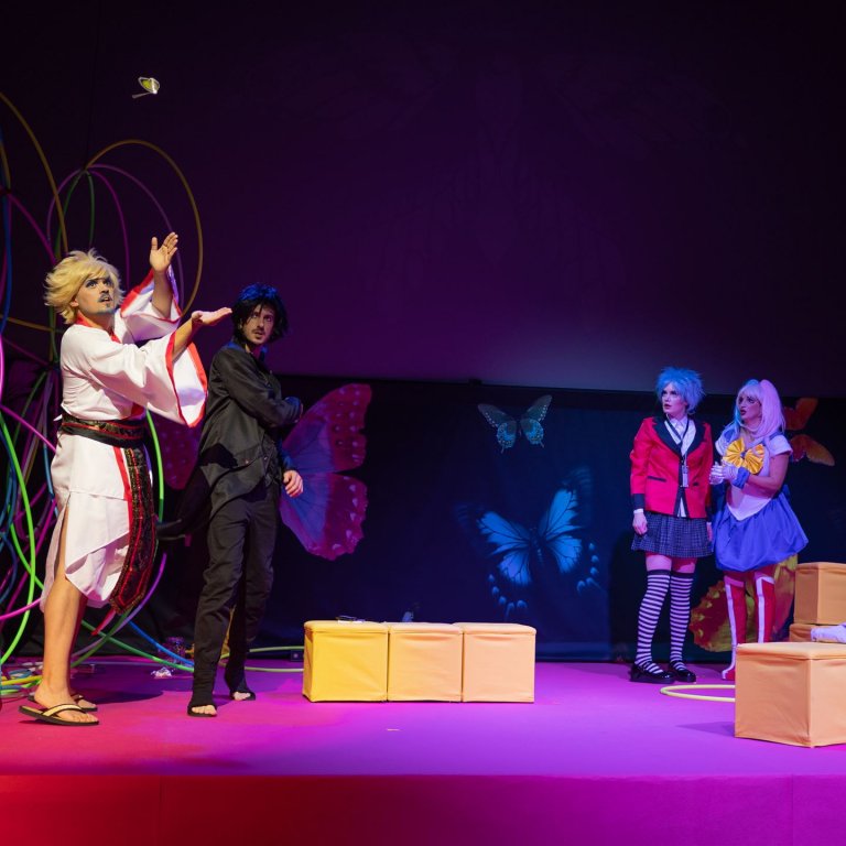 Zum ersten Mal seit September 2020 konnten wir mit "Butterfly" wieder eine Premiere feiern. Unsere Sänger*innen Aline Lettow (Sopranistin), Rebecca Aline Frese (Mezzosopranistin), Ljuban Živanović (Tenor) und Lukas Anton (Bariton) glänzten vor einem ausverkauften Haus. Auch Amy Brinkman Davies (musikalische Leitung) brillierte am Klavier und Synthesizer und schaffte eine Atmosphäre, die einen sofort in den Bann zog. Das Publikum war begeistert und belohnte die harte Arbeit von sechs Wochen mit tosendem Applaus.