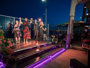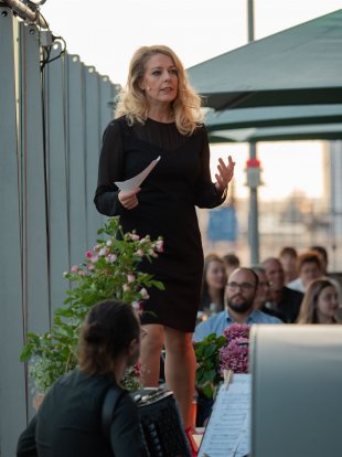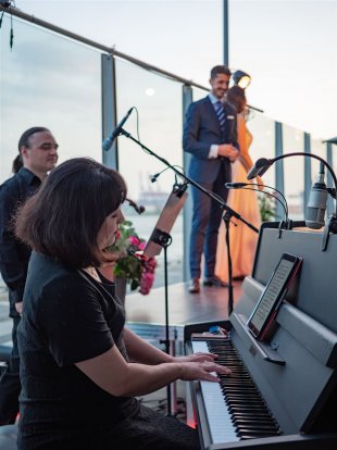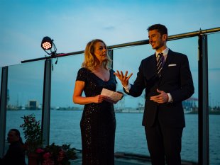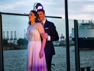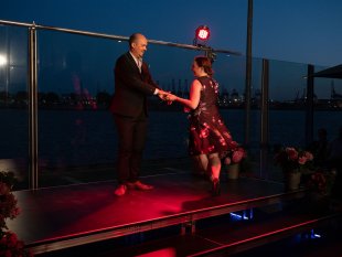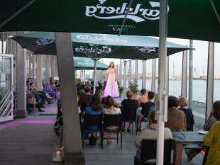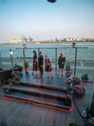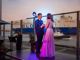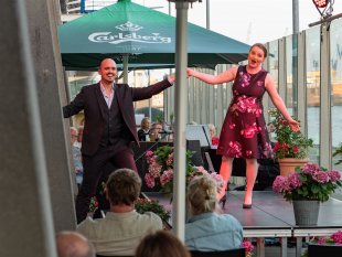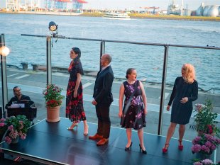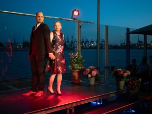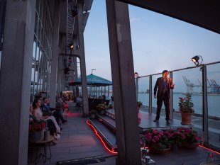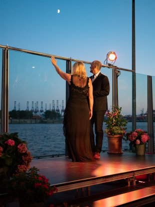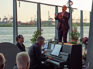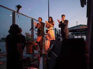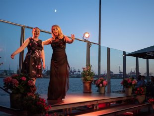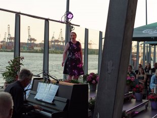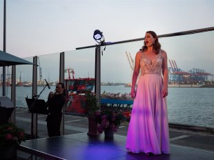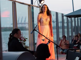 Ein laues Sommerlüftchen, ein wunderschöner, blauer Abendhimmel, die blinkenden Lichter des Hafens - und mitten drin Unsere Künstler*innen und die ersten Gäste von "Oper am Kai". Mehr hätten wir uns für unser Eröffnungswochenende der neuen Konzertreihe auf unserer Elbterrasse nicht wünschen können! Gefördert wird "Oper am Kai" im Rahmen des Kultursommers Hamburg.