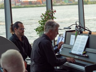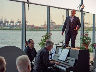Von ganz anderer Klanglichkeit, aber nicht weniger Qualität, war dann der zweite Abend "Auf der Reeperbahn, nachts um halb eins" mit Sopranistin Marie Sophie Richter, Mezzosopranistin Rebecca Aline Frese und Bariton Lukas Anton. Hamburg Schlager und Hafenlieder, gepaart mit Liebesduetten aus Oper, luden das Publikum zu mitschunkeln ein. Markus Bruker am Klavier und Krzysztof Gediga am Akkordeon sorgten für die passende Begleitung.