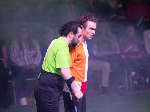 Bei dieser immersiven Inszenierung haben Sie die Möglichkeit in der "Fankurve Reihe 1" sowie "Bande Reihe 0" direkt am Spielfeldrand Platz zu nehmen. Auf der Tribüne können Sie wie gewohnt "nur" zuschauen.