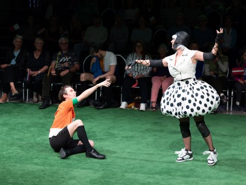 Bei dieser immersiven Inszenierung haben Sie die Möglichkeit in der "Fankurve Reihe 1" sowie "Bande Reihe 0" direkt am Spielfeldrand Platz zu nehmen. Auf der Tribüne können Sie wie gewohnt "nur" zuschauen.