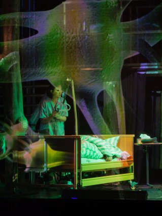 "Die Genialität, mit der die Intendantin und Regisseurin Inken Rahardt die Musik des Komponisten in all ihre Einzelteile zerlegt, neu sortiert und der Inszenierung entsprechend mutig angepasst hat, fasziniert und versetzt einen in verblüfftes Staunen." - zur vollständigen Kritik