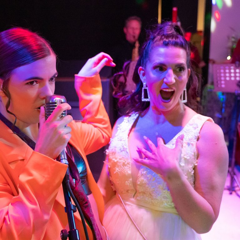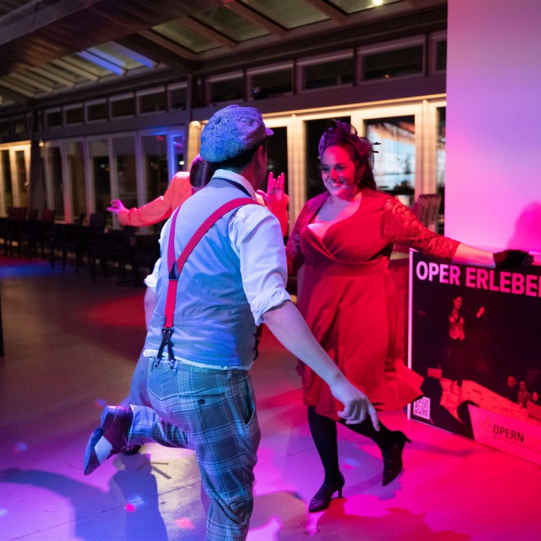 Das Publikum sitzt in dieser Inszenierung ganz dicht am Geschehen. Und wer mag, kann in der Pause im Club “Momus” sein Tanzbein schwingen.