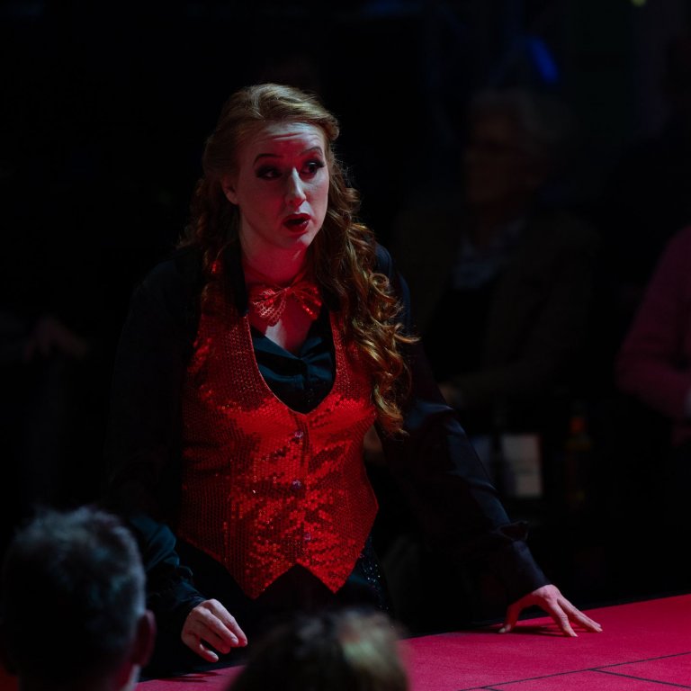 Bei dieser immersiven Inszenierung haben Sie die Möglichkeit, an den Spieltischen von Violettas Casino Platz zu nehmen. So sitzen Sie mittendrin und können sogar ihre eigenen Einsätze machen! Auf der Tribüne können Sie wie gewohnt "nur" zuschauen.