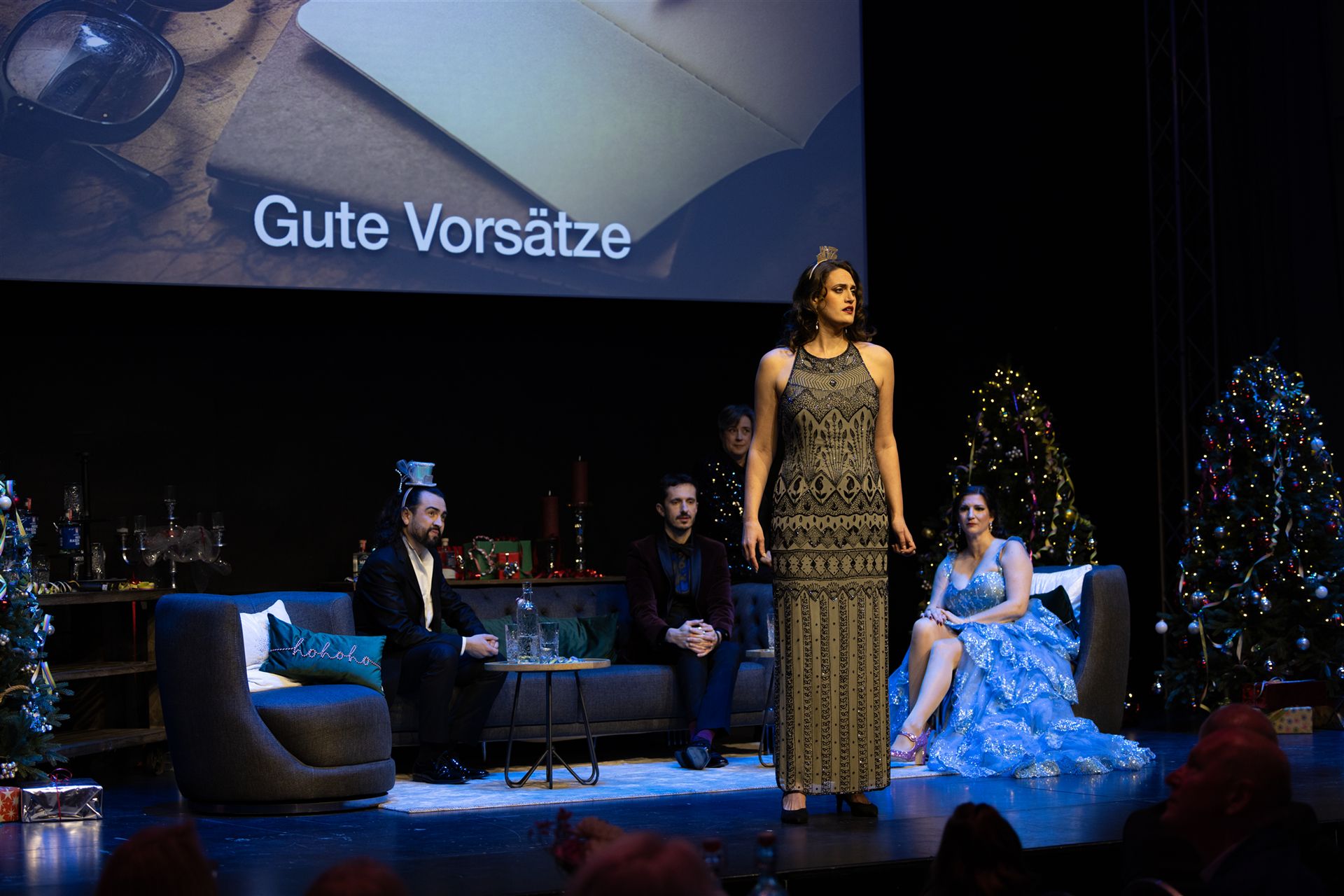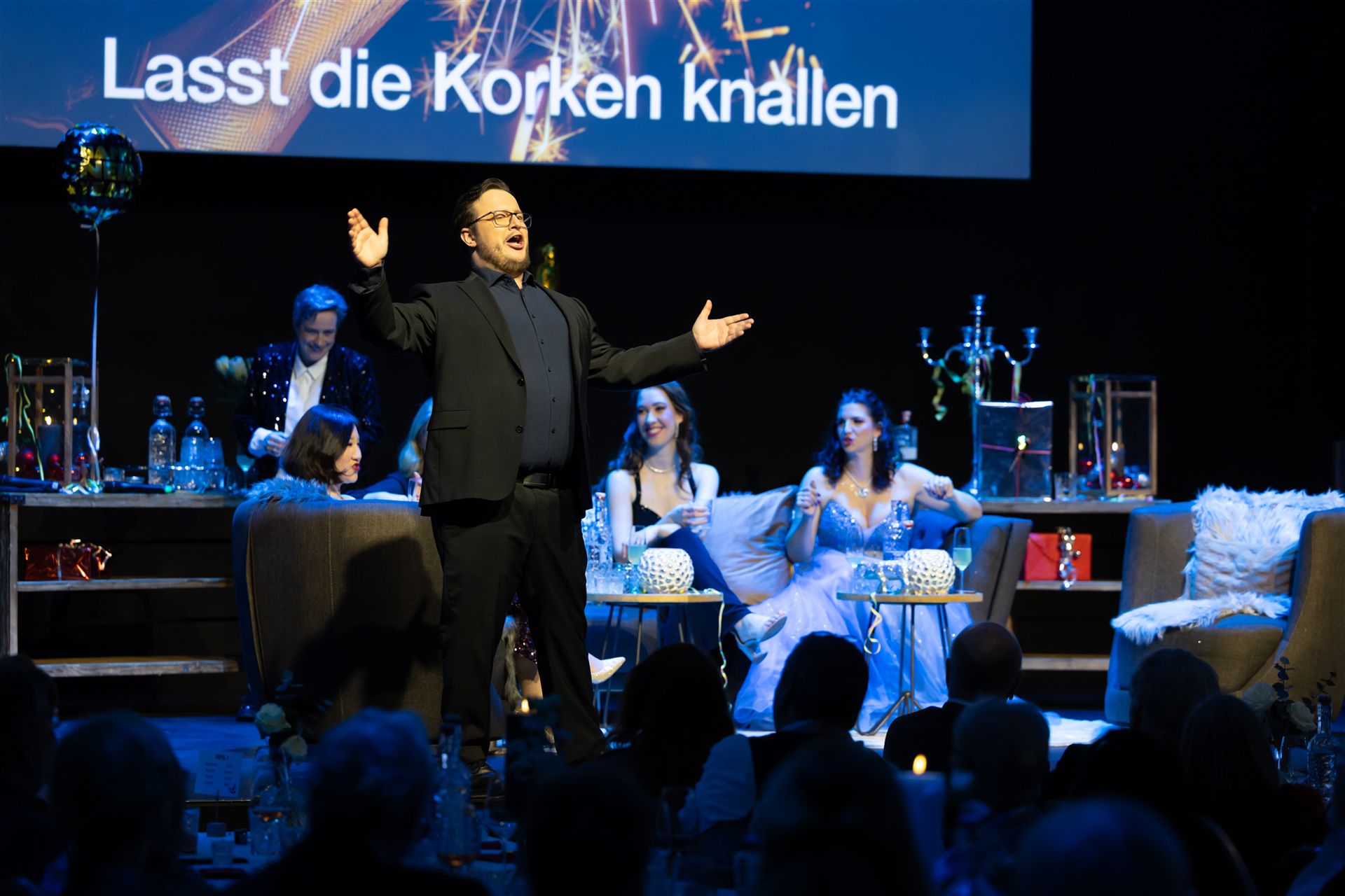 90 Sekunden haben die Sänger*innen Zeit, ihre Arie oder ihr Lied zu präsentieren. 90 Sekunden, die über Sieg oder Niederlage entscheiden. Denn die Siegerin oder den Sieger wählen Sie! Ein Dezibelmesser misst die Stärke Ihres Applauses. Der Spaß geht über mehrere Runden. Jede Runde hat ein Thema, passend zum Jahreswechsel. Und pünktlich um Mitternacht stoßen wir alle miteinander an. Seien Sie dabei - es wird ein rauschendes Fest!