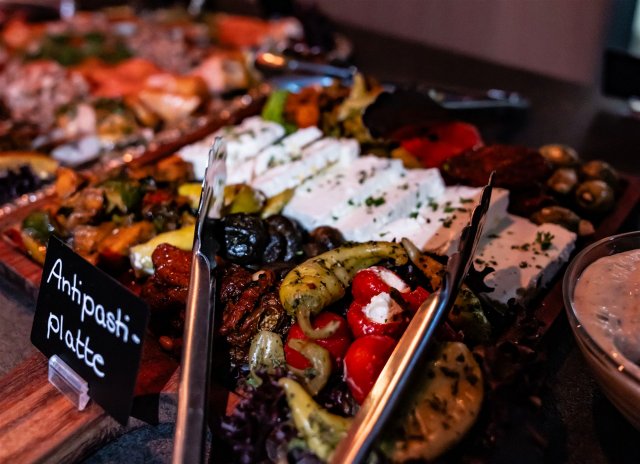Falls Sie in Reihenbestuhlung sitzen, steht im Foyer oder im Bistro ein eingedeckter Tisch für Ihre Teilnahme am Büfett bereit.